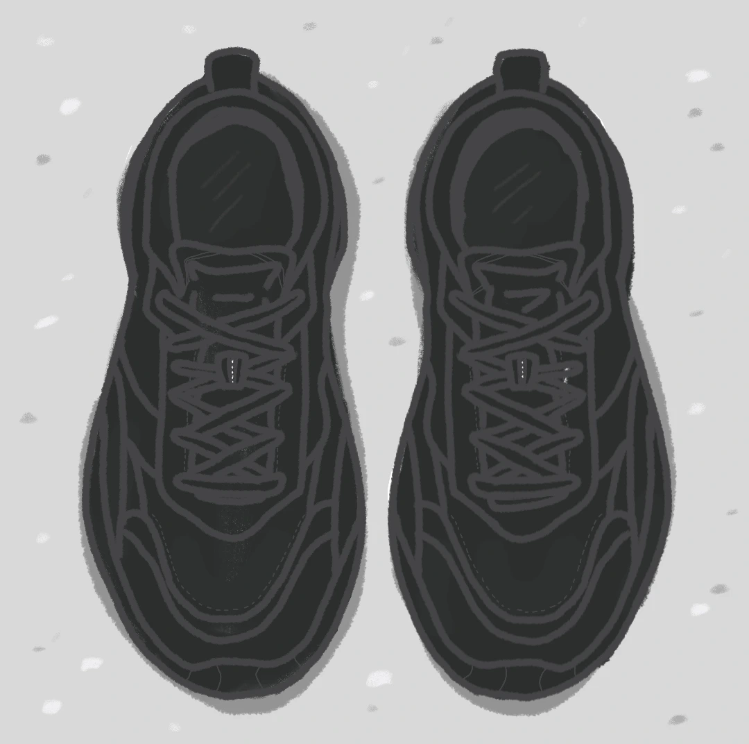 또, 밑창이 까만색이면 자주 빨지 않아도 신발이 더러워 보이지 않는다는 장점이 있다. 일부러 신발끈도 튀지 않는 검은색으로 골라서 매 주면, 멀찍이서 보면 그냥 검은색 한 덩어리로 보일 것이다.