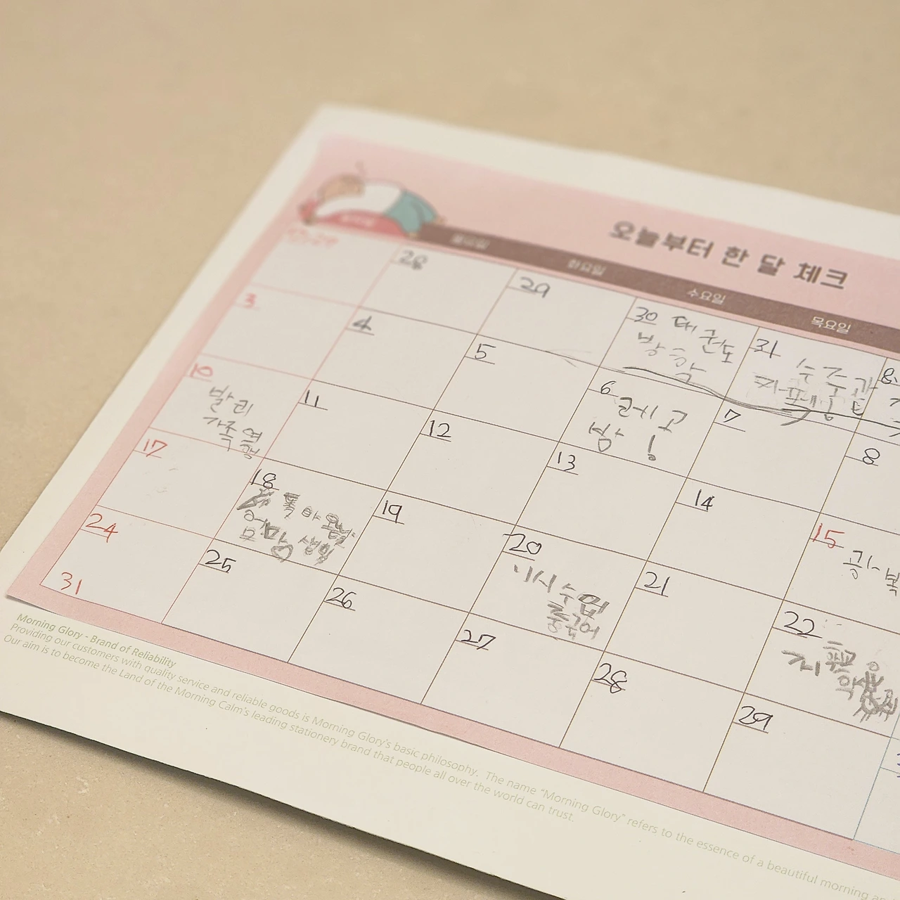세로칸에는 할 일을, 가로칸에는 날짜를 쓰고 완수한 일에 대해서 동그라미만 표시하기로 했다. 이렇게 한 페이지짜리 간단 플래너가 만들어졌다.