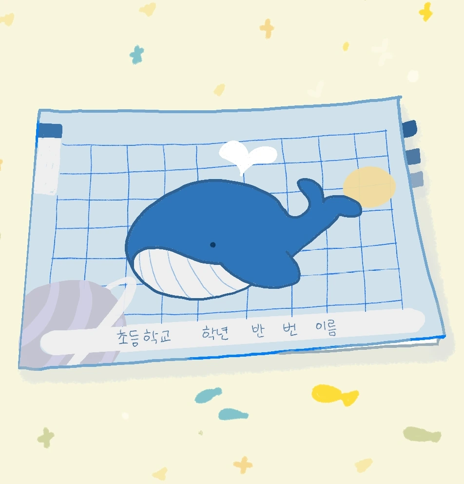 다음으로는 문구점으로 달려가서 아이가 좋아하는 고래가 큼지막하게 그려진 노트를 한 권 샀다. 가로 15칸, 세로 10칸짜리 글씨 쓰기 연습할 수 있는 깍두기 노트다.