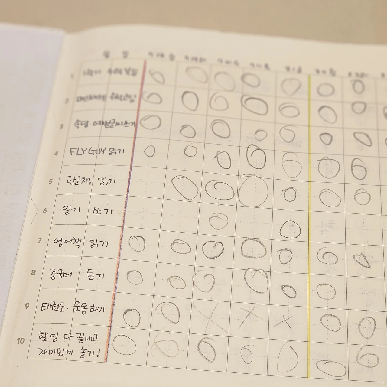 그다음 장에는 할 일 리스트를 만들었다. 전용 플래너를 쓰는 것도 좋겠지만, 매일 해야 할 과제가 일정하거니와 매일매일 할 일을 쓰라고 하면 아이가 짜증 내며 중도포기할 것만 같았다.