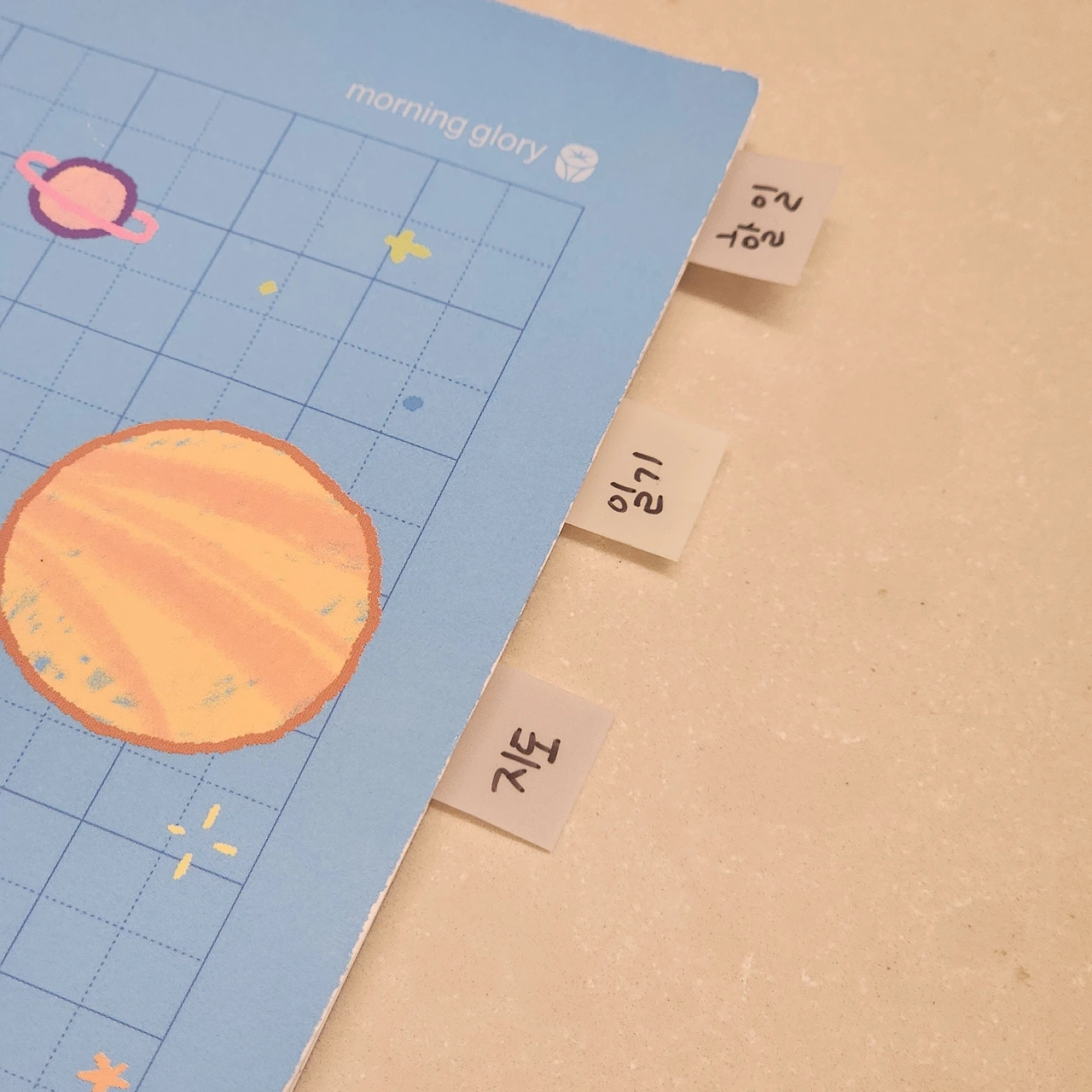 노트는 하나지만 그 속에는 달력, 스터디 플래너, 속담, 독서록, 맞춤법 연습, 바른 글씨 쓰기 연습, 일기, 지도 그리기 활동지가 들어있다. 처음엔 그저 가방이 무거워지는 것이 싫어서 산 노트인데, 아이의 여름방학이 이 한 권으로 농축되었다.