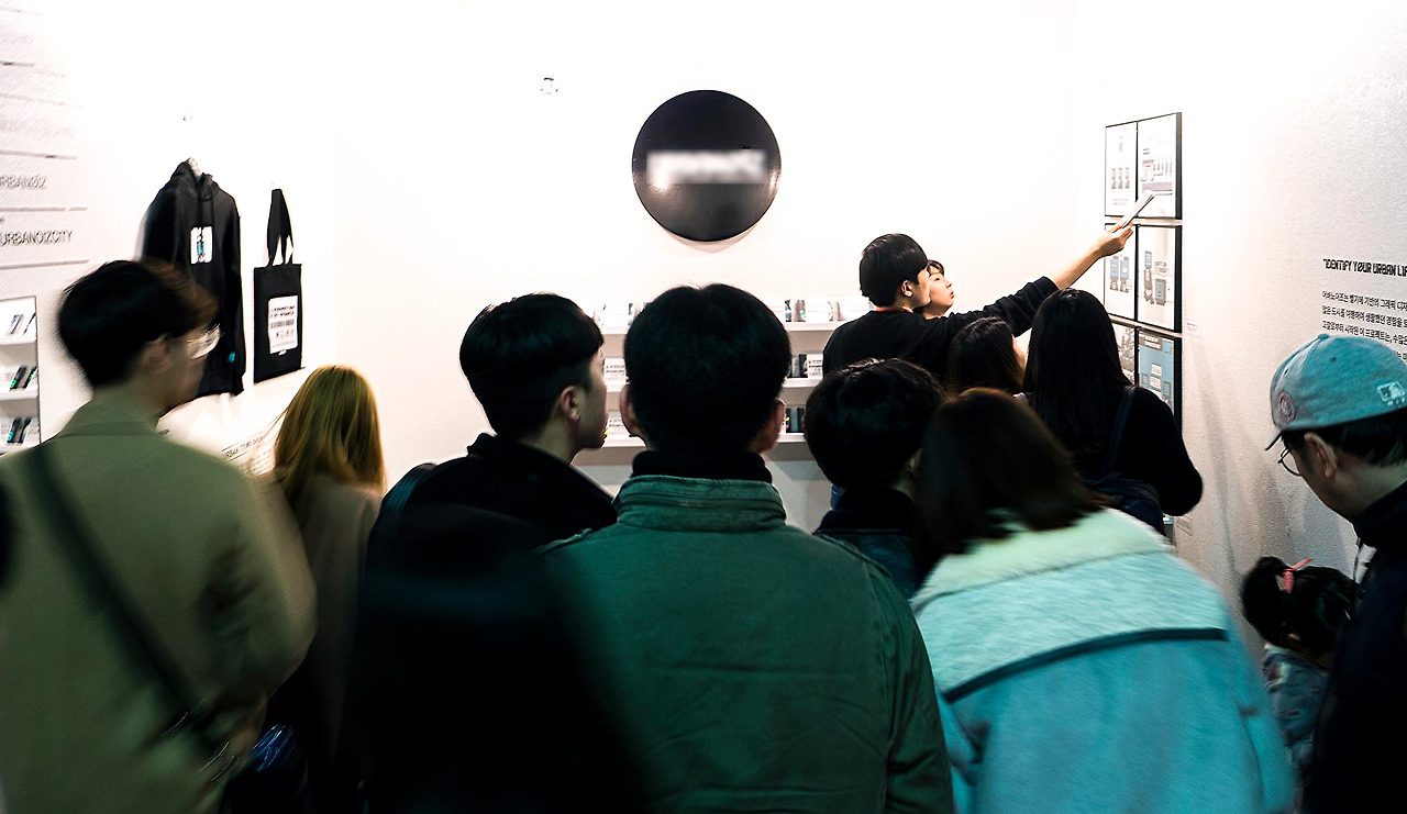 내가 혼자 전시장을 지키는 동안 평범하고 차분했던 부스 분위기가 단 한 명의 등장으로 조금씩 달라지기 시작했다. 듬직한 재영이에게 뒤를 맡기고 잠시 물을 사러 자리를 비웠다가 다시 부스로 돌아왔는데, 믿지 못할 광경이 벌어지고 있었다.