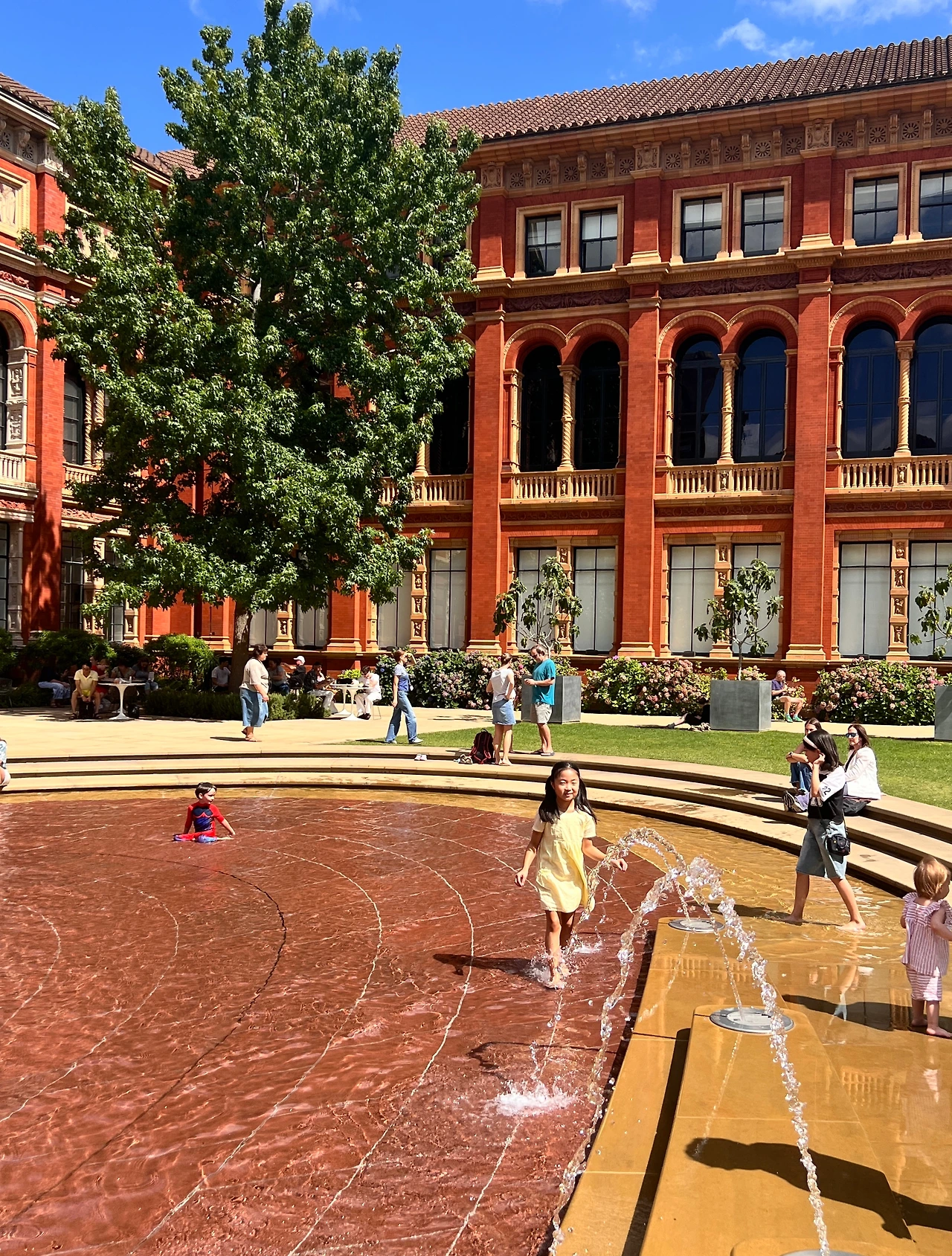 나는 붉은 색 박물관을 바라보며 잔디밭에 누워서, 나작한 물을 찰방대며 뛰어다니는 담율이를 보다가, 잠깐 한 숨 졸았다가, 드레스를 입고 온 다른 아이가 물 속에 풍덩 들어가는 모습을 보고 그 집 부모님의 샤우팅 "No~~~~~~~"를 들으며 웃었다가, 그렇게 행복하고 편안한 휴식 시간을 가졌다. 햇볕, 바람, 분위기, 완벽한 하루였다.