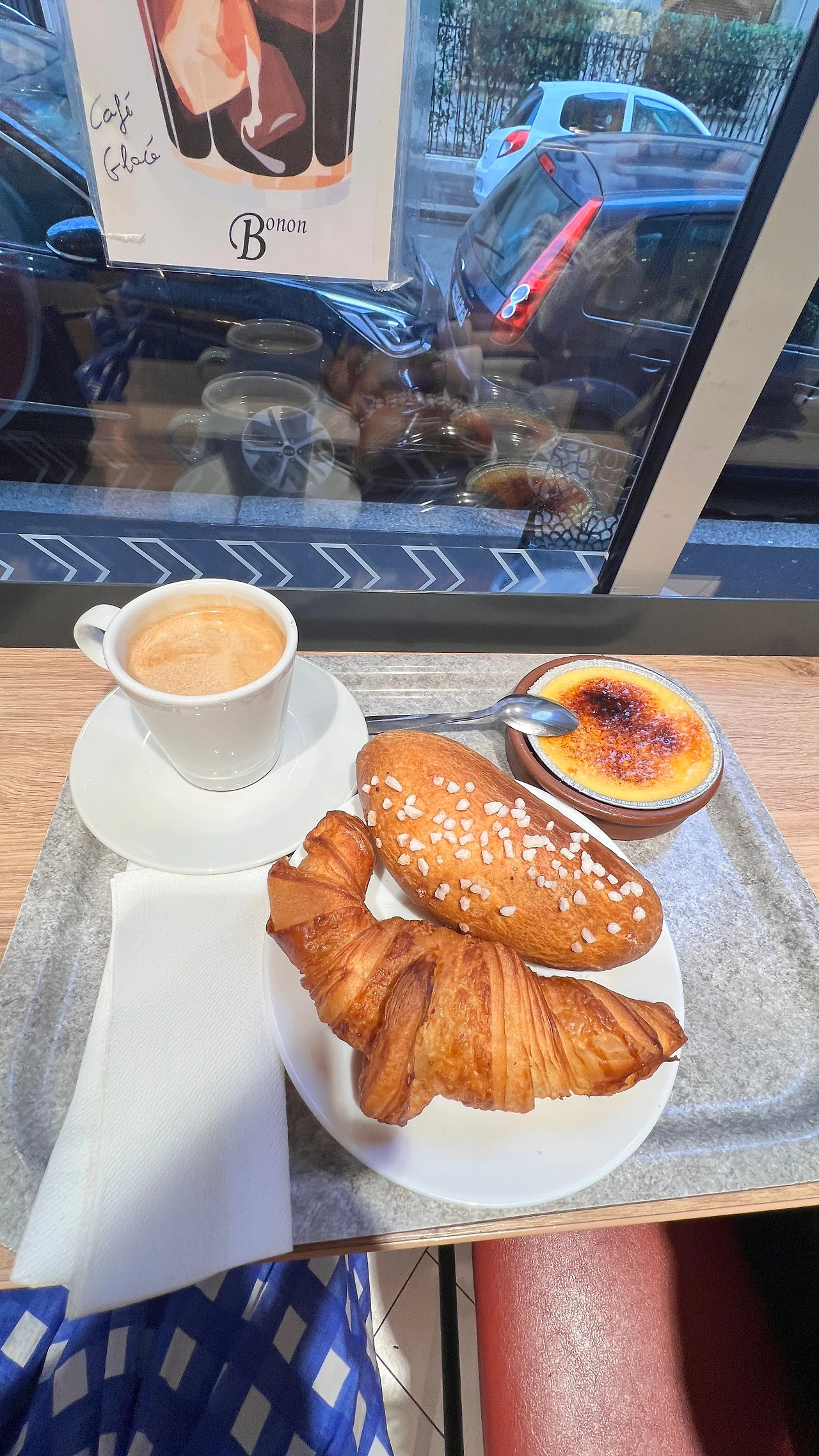 따뜻한 라떼와 브리오슈, 크로와상, 크림 브륄레를 주문했다. 브리오슈는 어찌나 폭신한지. 손으로 잡고 먹는 동안에 엄지 손가락이 빵속으로 구멍을 내고 들어갔다. 라떼는 기계로 내려주는데도 한 잔 더 마시고 싶을 정도로 맛있었다. 따뜻하고 달달한 음식이 몸 속으로 들어가니 바깥 풍경이 달라보였다.