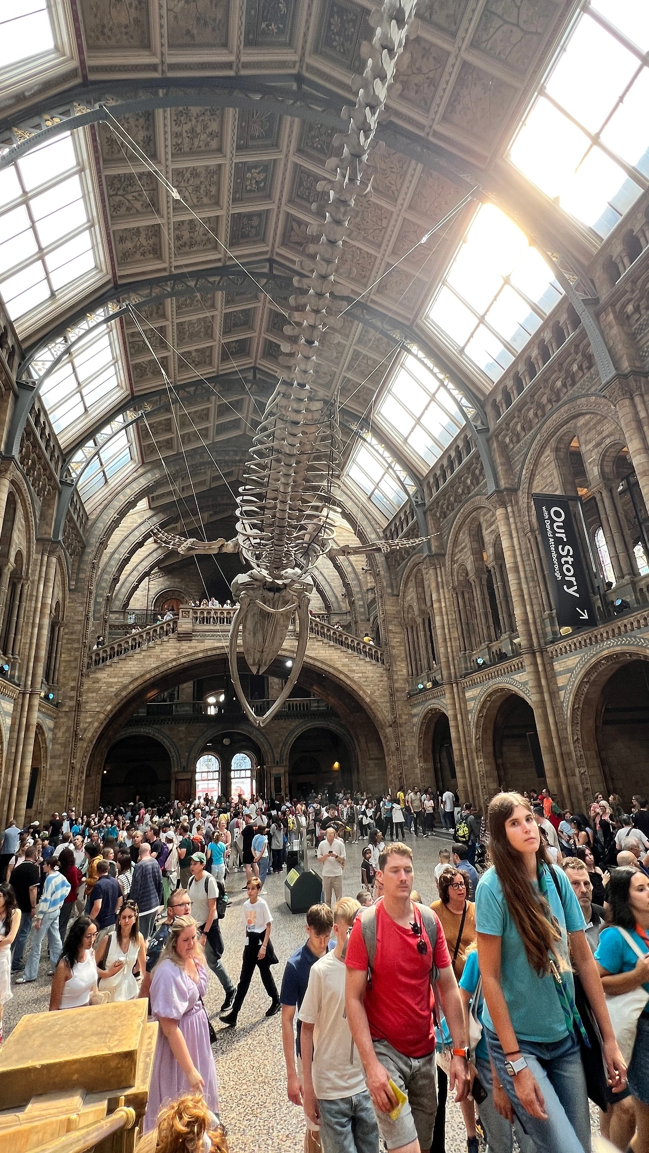 실내 전시는 약 20년 전 첫 런던 여행에서의 가물거리는 기억과 크게 다르지 않았다. 전시품과 디오라마, 설명 패널 등이 많이 낡았고, 전시실마다 사람들이 넘쳐나서 밀려다녀야 할 지경이었다. 런던 자연사 박물관의 하이라이트인 고래뼈가 매달려있는 홀은 정말 멋있었는데, 그 큰 홀에 사람들이 꽉 차 있었다.