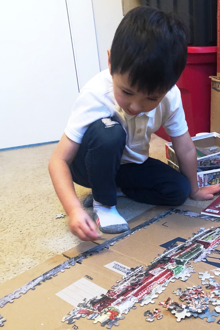 3살짜리 아이가 1000개의 작은 조각의 퍼즐 맞추기를 기대하기가 어려워 내가 일단 한 구간을 정해 퍼즐을 찾은 다음 대강 흩틀어 놓고 하나씩 제 자리에 맞추는 방식으로 아이의 관심을 이끌기 위해 노력했다. 아이는 생각 외로 퍼즐에 큰 관심을 가졌다. 나랑 얼굴만 마주치면 아침이고 저녁이고 "Halmi, would like to do the puzzle with me 할미, 나랑 퍼즐 할래요? "Mom, one more piece before school, please. 엄마, 학교 가기 전에 퍼즐 하나만 더 맞추고요...!" 아들은 엄마가 시작한 게임이니 나보고 책임지란다. 괜한 시작에 나의 하루는 이 작은 퍼즐피스와의 싸움으로 시작되었다.