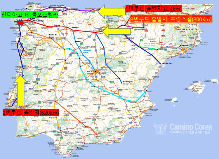 산티아고 프랑스 길은 인천공항 ▷ 드골공항까지 8965km를 비행기를 타고 가서 ▷ 드골공항~ 바욘까지는 800km는 고속버스로 이동하여 ▷ 순례길 출발지인 생장피드포트~산티아고 대 콤포스텔라까지 800km는 걸어야 했다.