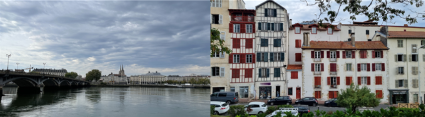 (좌) 바욘의 아도르 강변 (우) 바욘의 시내 다양한 건물들