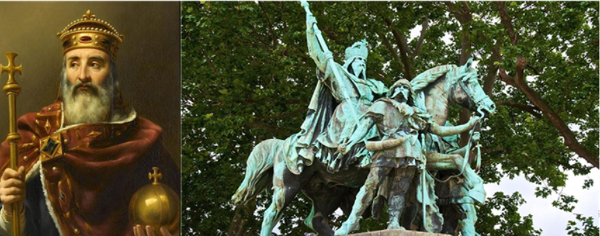 (좌) 샤를 마뉴 대왕 초상 (우) 샤를 마뉴 대왕 조각상