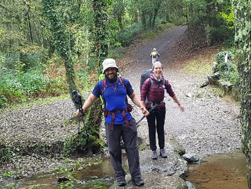 그는 순례길에서 우리 부부랑 마주치는 순간마다 “괜찮아요?”와 “괜찮아요!”를 반복하며 나에게 배운 한국말 한마디를 기억해 주었다. 그럴 때마다 아내는 엄지척하면서 유일하게 알고 있는 포르투갈어인 ‘이스 따봉’ 하면서 아내는 "너는 나의 가장 훌륭한 학생이다"(You are my best student.) 그를 추켜세워 주었다. 그가 "Many of the ladies I've met always say that."(나를 만나는 많은 아줌마들은 늘 그렇게 말해요.)라고 말해서 다 같이 웃었다.