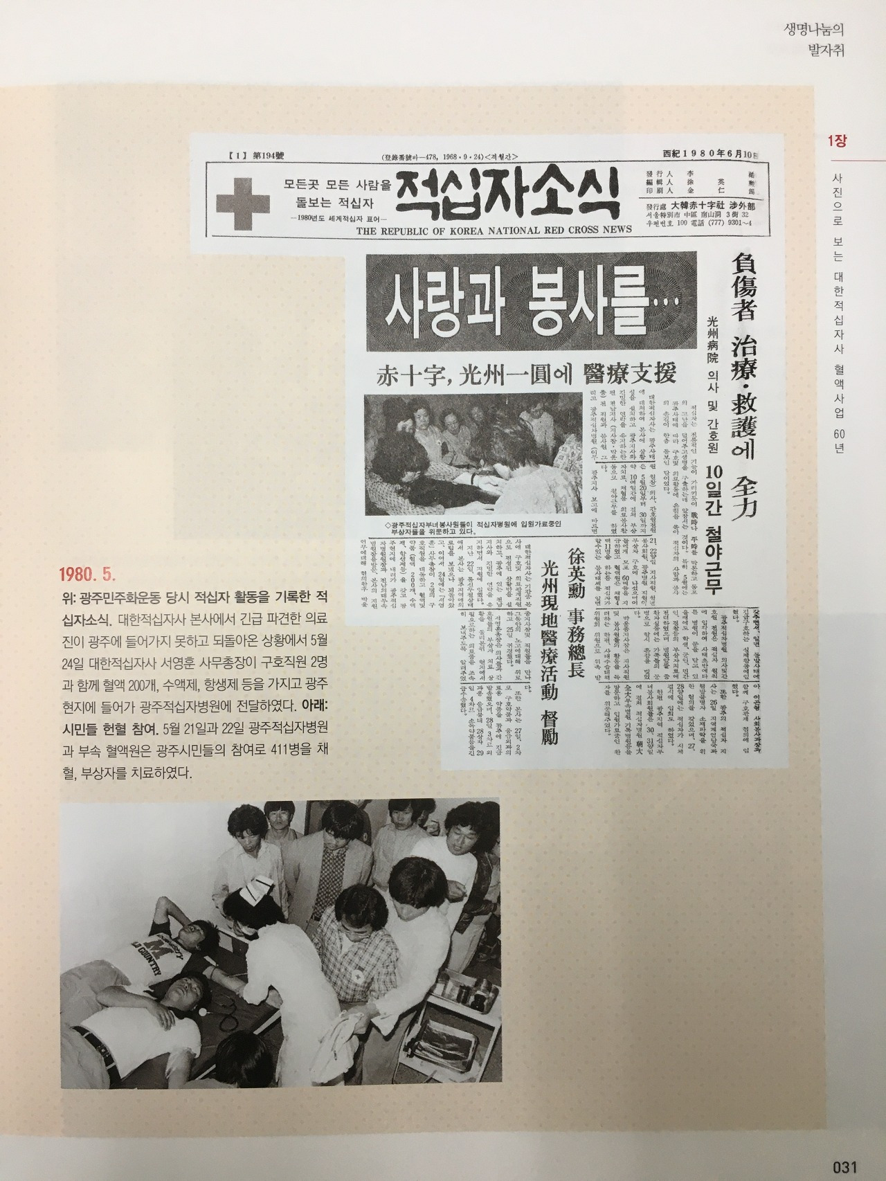 적십자는 정부의 보조자지만 전쟁터에서 부상자를 적군, 아군 차별 없이 구호한다는 인도주의 정신과 중립의 원칙에 의거 열흘 동안 철야 근무를 하면서 부상자를 치료했다. 당시 치열했던 모습들을 영화 ‘택시 운전사’에서 엿볼 수 있다.