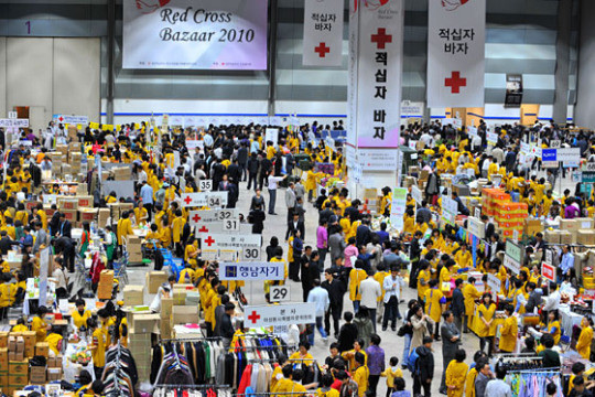 코로나 19로 2년이 넘게 중단되었던 적십자 바자가 서울 코엑스에서 성황리에 열렸다. 기증 물품으로 이루어지는 국내 최대 바자다. 1984년 시작된 적십자 바자는 영부인, 국무위원 부인, 대기업 총수 부인, 금융기관장 및 공공기관장 부인, 외교사절 부인들로 이루어진 수요봉사회가 후원하는 행사로 바자 수익금은 생활이 어려운 조손가정, 재난구호 등 인도주의 활동에 사용된다.