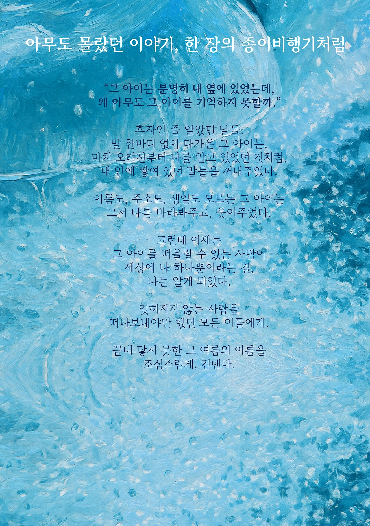 《너에게 닿지 못한 여름》은 그 아이와의 만남을 통해 드러나는 상실과 성장, 이별과 회복의 이야기입니다. 그리고 닿을 수 없었지만, 분명히 존재했던 감정들에 대한 기록이기도 합니다.