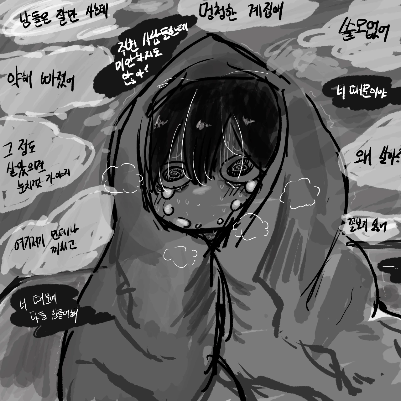 밤이 찾아오고 주변이 조용해지면 머릿속으로 잔뜩 기어들어오는 괴물이 있답니다.