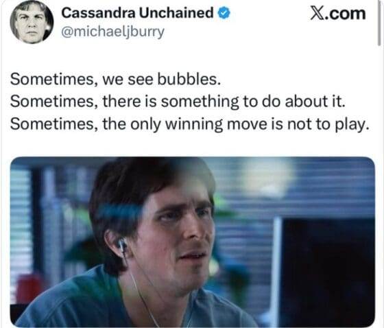 이러한 상황에서 유명한 분이 등장한다. 바로 영화 빅 쇼트(Big Short)의 실제 인물로 유명한 '마이클 버리'가 11월 초 공시에서 엔비디아, 팔란티어 풋옵션(하락하면 돈을 버는 상품)을 보유한 것이 확인되었다. 이미 그 전에 X(트위터)에서도 AI 버블에 대해 경고했었다.