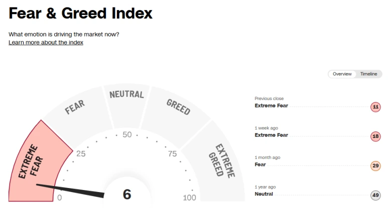 공포&탐욕 지수는 극단적 공포 구간에 이르렀다.