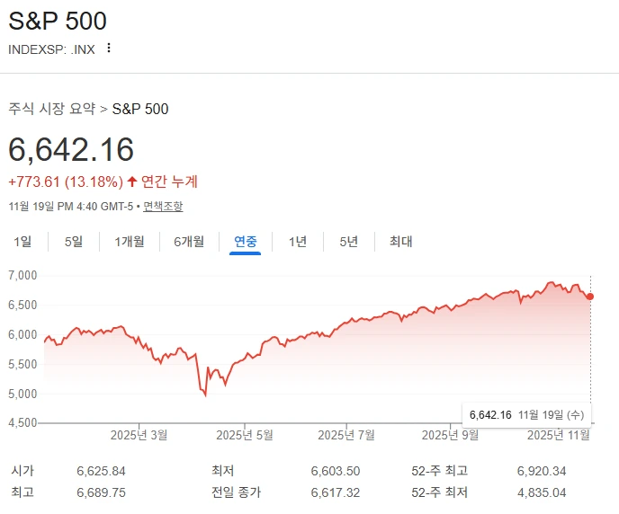 앞서 언급한 여러가지 불확실성과, 이미 불씨가 지펴진 AI 버블론, 미국 증시 고점론에 빅 쇼트의 주인공인 마이클 버리의 경고까지 합세해, 투자자들의 공포 심리를 자극했다.