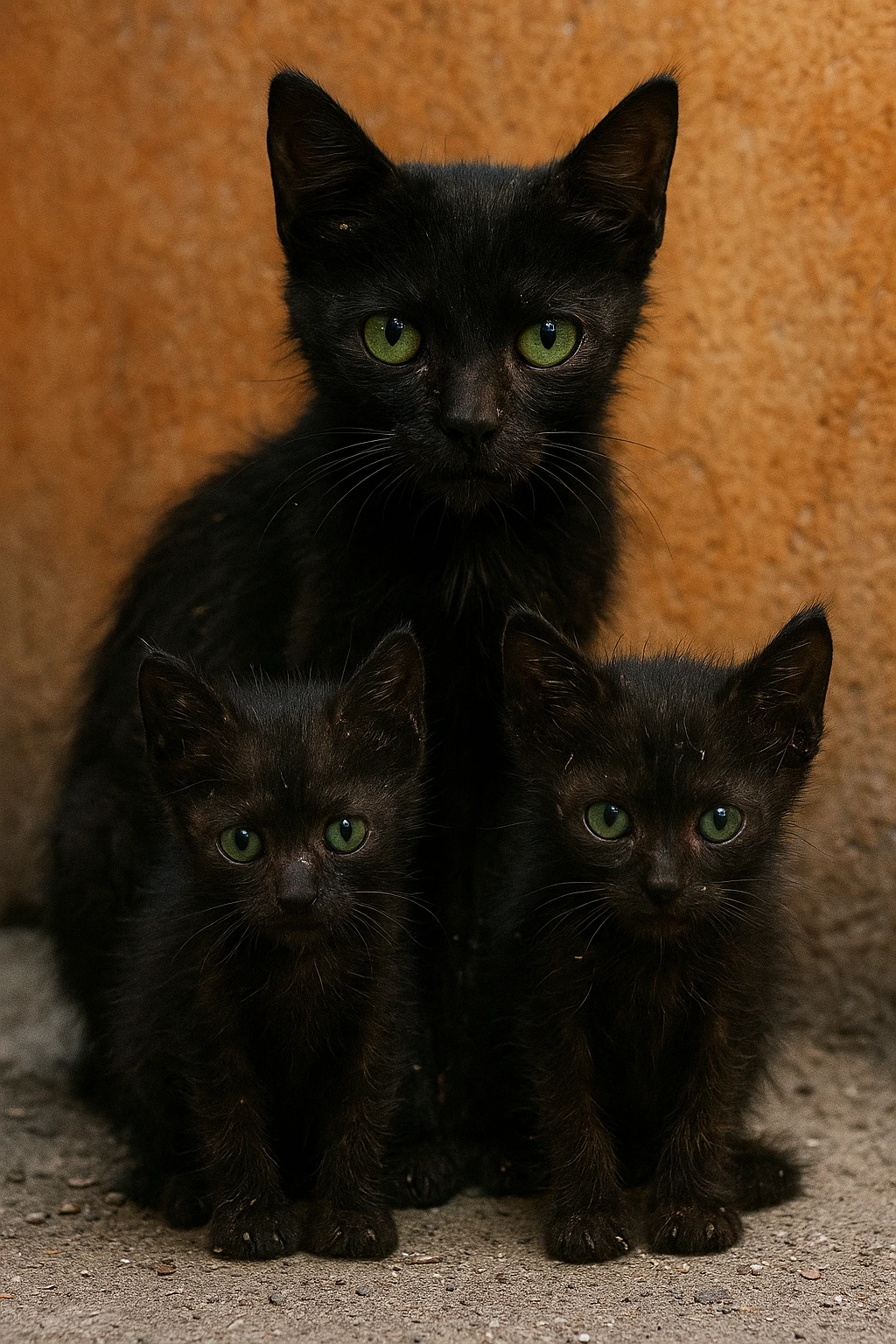 “어느 날 갑자기 어디서 왔는지 빼빼 마른 새까만 고양이가 눈에 띄었어. 기다란 소시지를 던져 줬더니 입에 물고는 어디론가 재빨리 가지 뭐야. 뒤쫓아 가봤어. 그곳에 새끼가 두 마리 있었고 어미는 물고 온 소시지를 새끼들에게 먹이는 거야. 자기는 옆에서 새끼들이 먹는 모습을 지켜만 보고.”