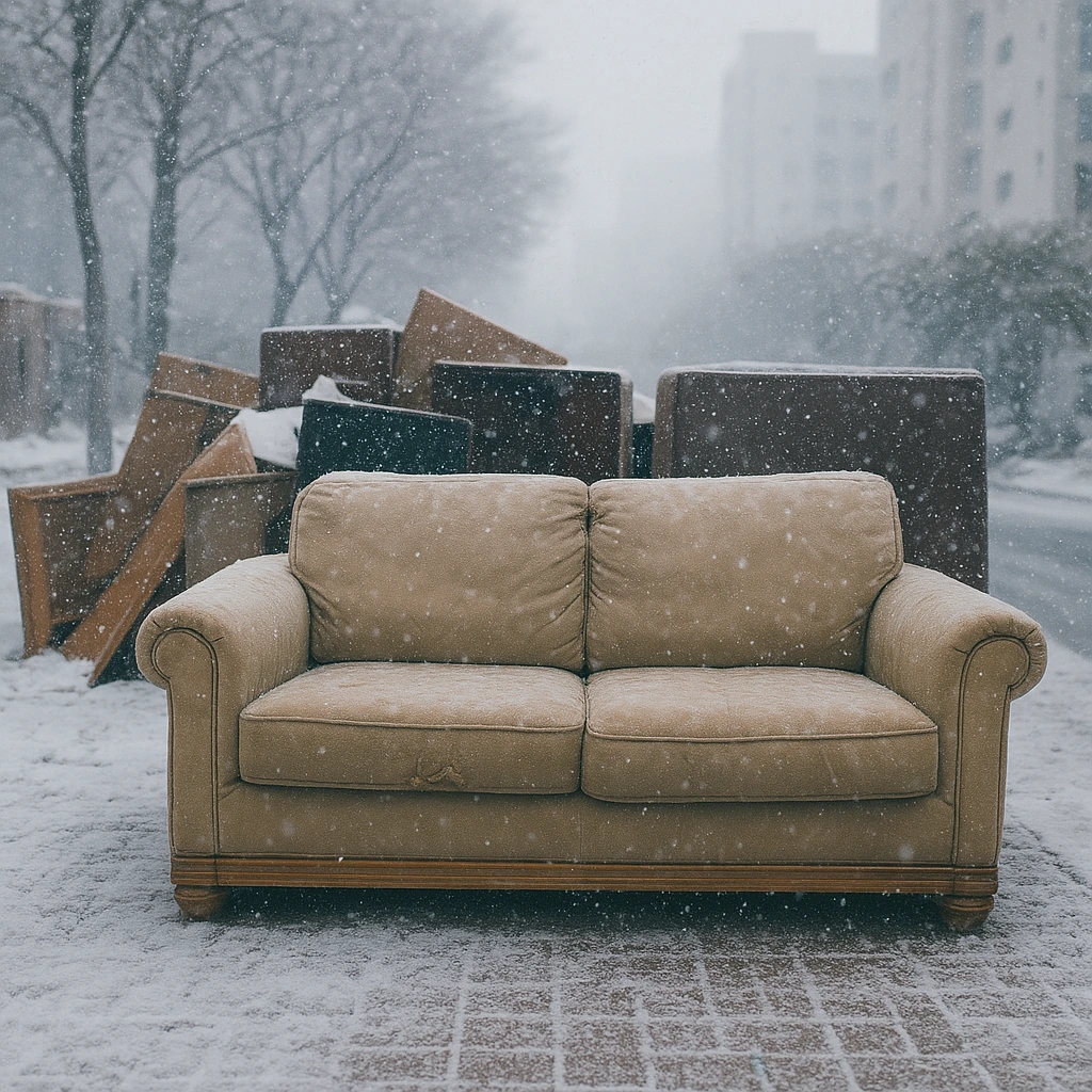 차일피일 미루다 떠나보내야겠다는 결심을 한 후 새 소파가 들어오는 날 헌 소파는 나갔다. 한 겨울, 낡은 소파는 아파트 재활용품이 모이는 장소에 딱지가 붙여진 채 한쪽 구석에 버려졌다. 외출하거나 슈퍼 갈 때 그 앞을 지나가야 하는데 그럴 때마다 나도 모르게 덩그러니 놓여 있는 낡은 소파에 자꾸 눈길이 갔다.