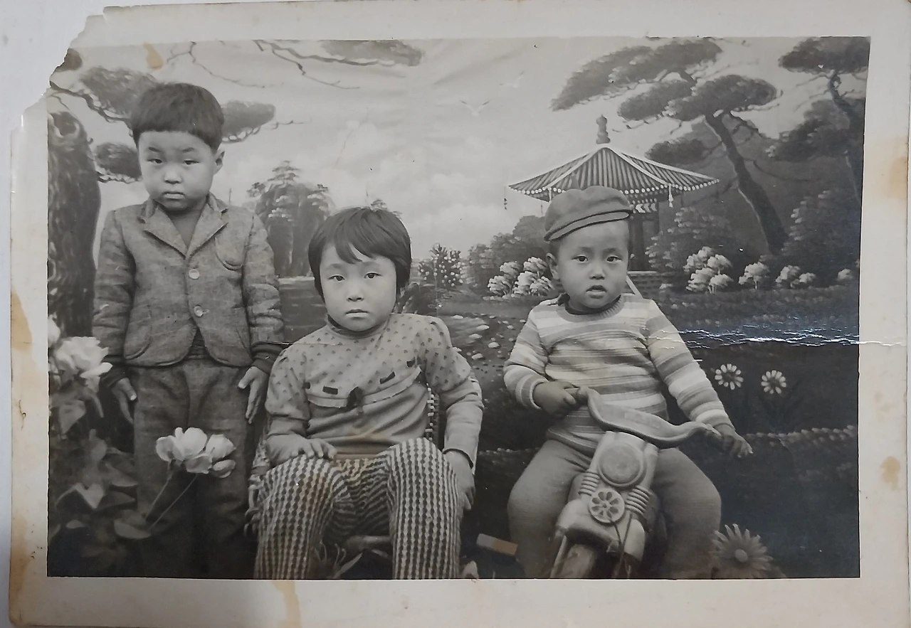 사진사 아저씨가 시키는 대로 설 자리를 배정받았지만, 우리 삼 남매는 무대에 처음 오른 배우처럼 어색한 표정이 어디서 꿔다 놓은 보릿자루 같다. 웃음기 없는 얼굴과 굳어버린 차렷 자세. 이게 대체 무슨 상황인지 감지 못한 벙벙하고 얼떨떨한 두 눈이 “여기를 보세요. 하나, 둘, 셋” 말과 동시에 같은 곳을 뚫어지게 응시한다.