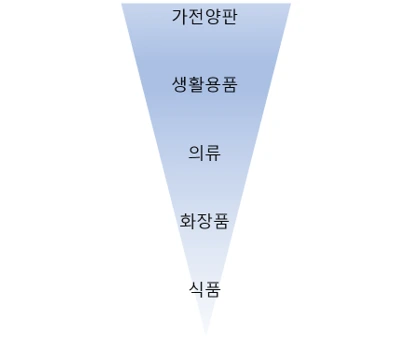 먼저 가격비교가 쉬운 표준화된 공산품부터 온라인의 점유율이 확대되었습니다. (예를 들면 가전제품, 대기업 공산품, 식료품)