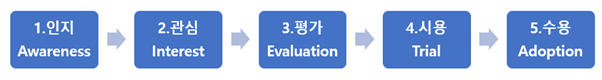 샘플, 체험은 소비자 행동 이론 관점에서도 유용합니다. 신상품 수용 5단계 중 단번에 4단계까지 이동시킵니다. 많은 제조사에서 체험단, 샘플 이벤트를 진행하는 이유입니다.