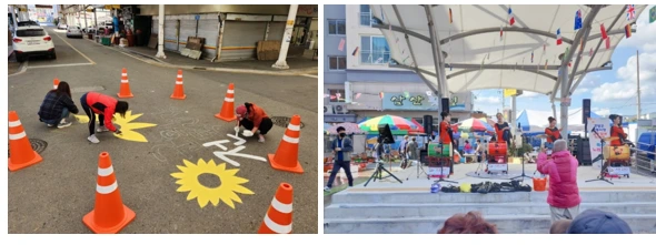 전통시장에서도 지자체의 지원을 받아 공간을 활용한 다양한 사업을 운영하고 있습니다. 포토존을 만들고 이벤트 공간을 만듭니다. 지원금을 받아 조형물도 만들고, 참여형 행사도 진행합니다.