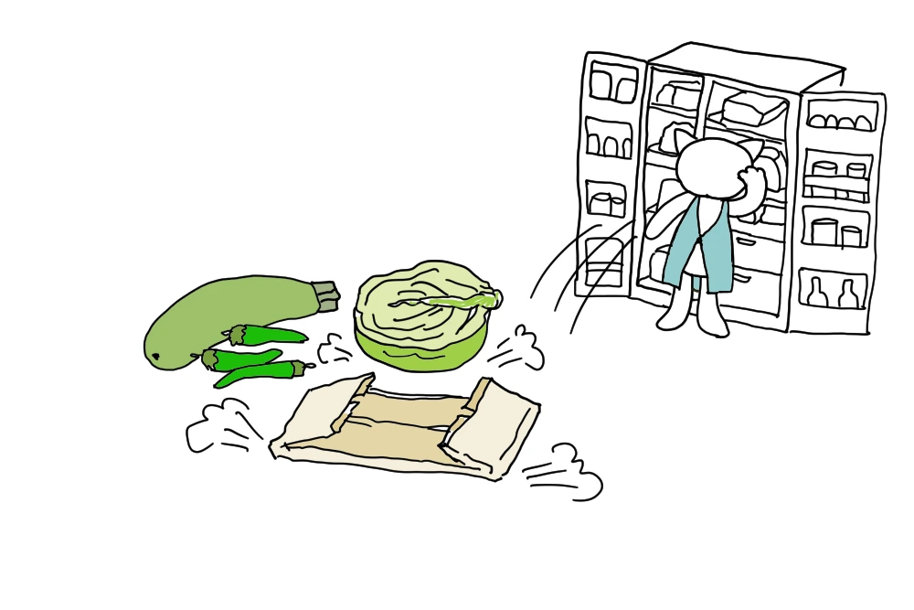 저녁 준비를 위해 냉장고를 뒤져서 건진 건...