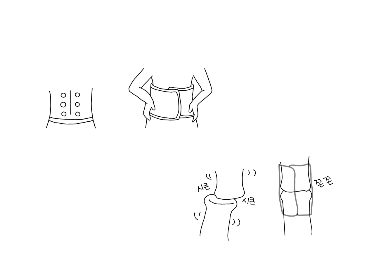 느낌이 드는데, 벨트를 하면 근육을 단단히 조여 주니, 걸을 때나 움직일 때 고통이 훨씬 줄고 편하다.