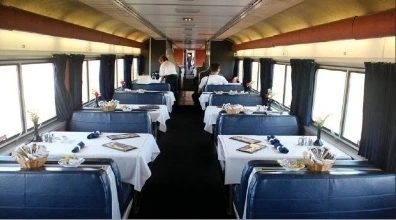 침대칸 이용승객들의 식사는 티켓 가격에 포함되어있고 음식은 생각했던 것보다 좋았다. 사실 비행기 기내식 정도의 음식 일거라고 생각했는데 아침, 점심, 저녁 모두 만족했다. 모든 식사에 음료와 디저트가 포함되었고 저녁식사는 애피타이저도 포함된 3코스 식사가 제공되었다. 커피와 소다, 주스 등은 식사하는 동안은 무제한 제공되고 맥주나 와인 등의 주류는 첫 번 오더는 무료이고 두 번째 오더부터는 지불을 해야 한다.