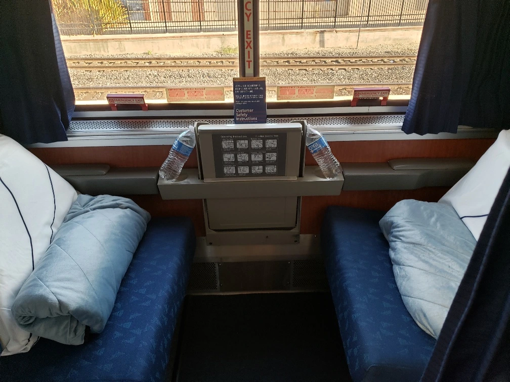Roomette은 가장 작은 침대칸으로, 서로 마주 보고 앉는 의자를 잘 때는 서로 붙여서 침대로 만들고 머리