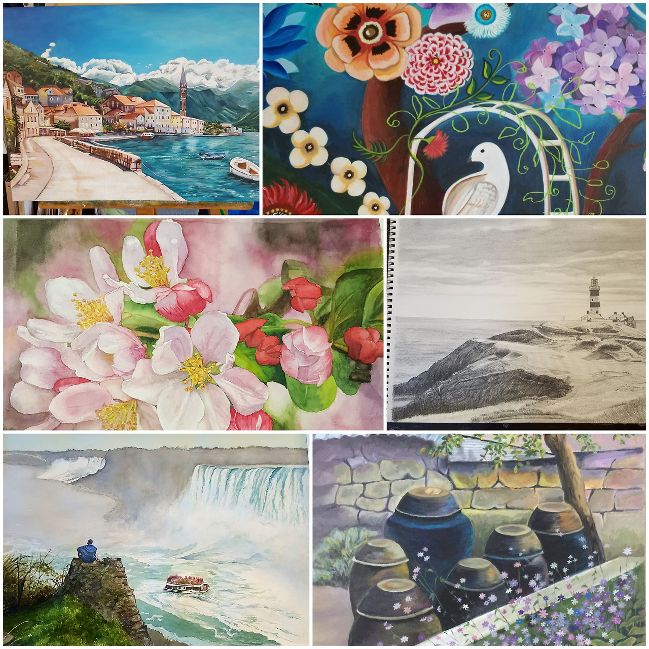 대부분 처음 미술을 접하는 분들 이기 때문에 특별히 무슨 주제를 정해서 하는 건 아니고, 처음에 기초드로잉을 하면서 그림과 좀 친해지는 시간을 갖고 단계적으로 여러 미술재료를 사용해 보면서 자기에게 맞는 미디엄을 찾기도 하고 그리고 싶었던 그림 주제를 그리기도 한다. 대부분 예쁜 꽃이나 멋진 풍경그림은 선호한다.