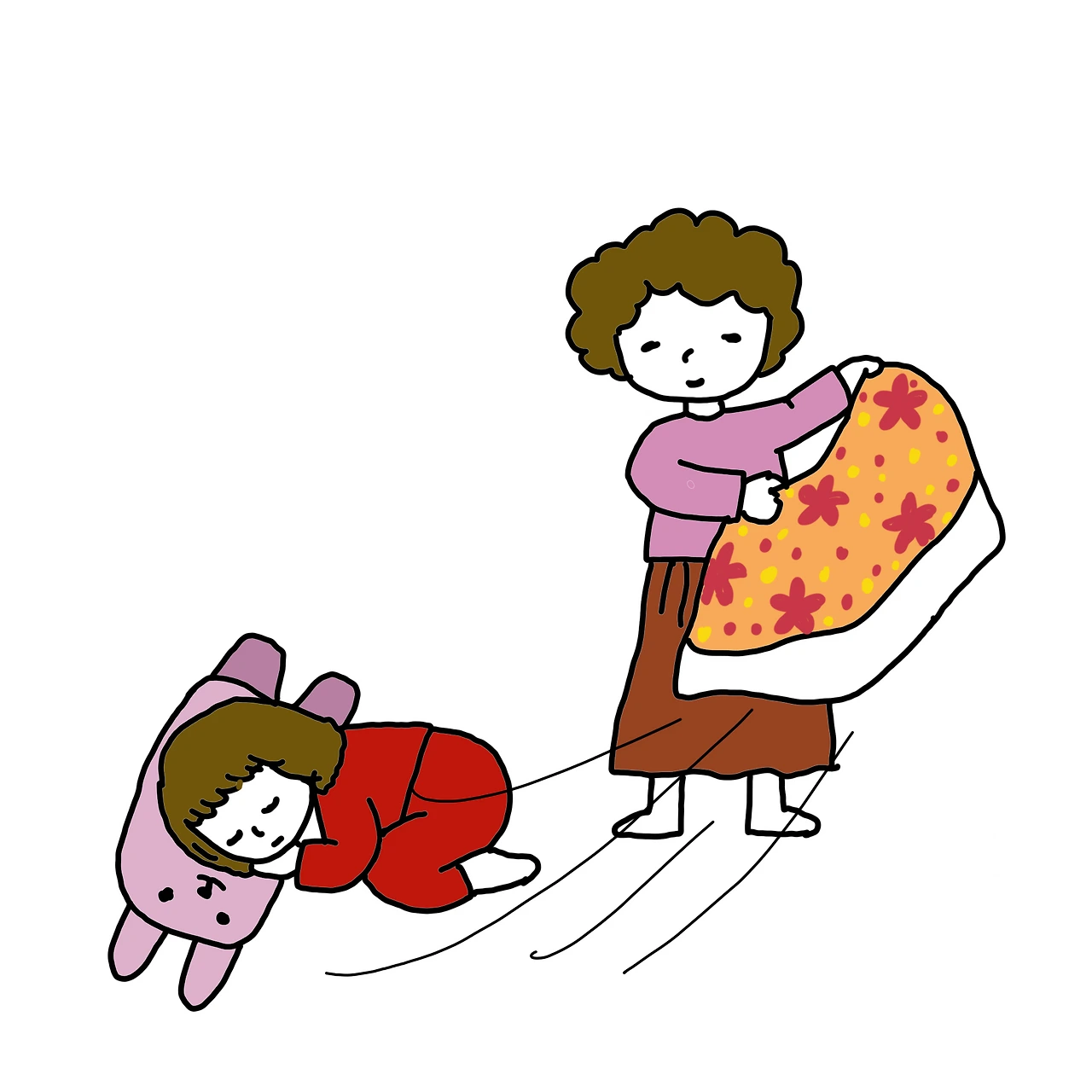겉 이불을 걷어가면 바로 바닥의 요 밑으로 숨는다 하지만 그 요 도 바로 휙 낙아채서 이불장에 넣고