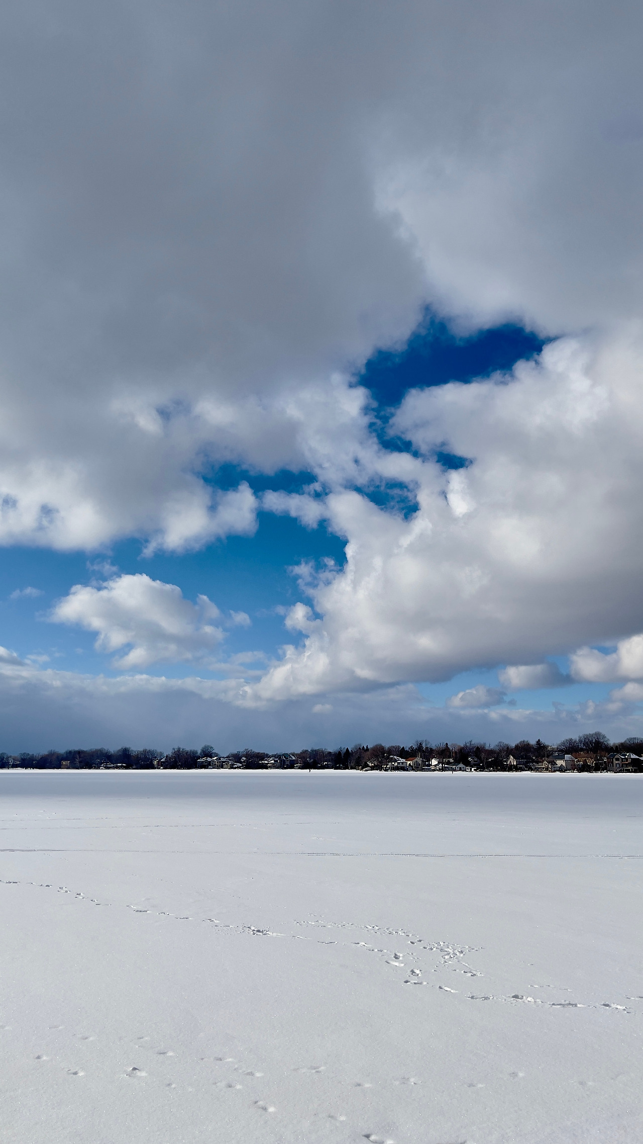 캐나다에 살면서 이렇게 꽁꽁 얼어버린 호수는 처음이었다. 끝이 보이지 않는 호수를 상상해 봤다.