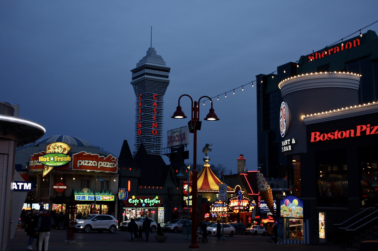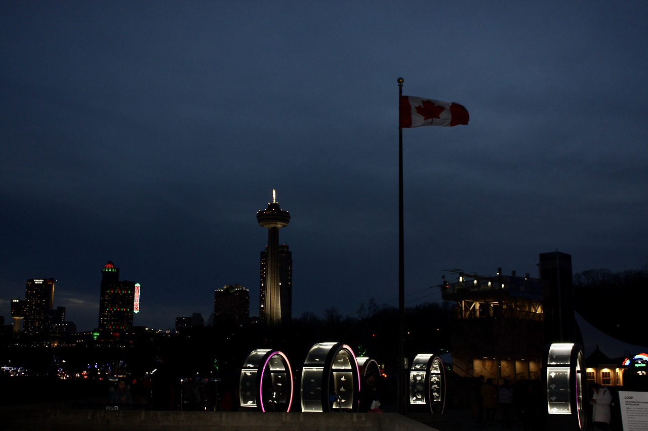 어둠 사이로 멀리서 보이는 나이아가라 폭포가 더욱 웅장해 보인다. 낮에 보는 나이아가라폭포와는 또 다른 위엄과 아우라가 있다.