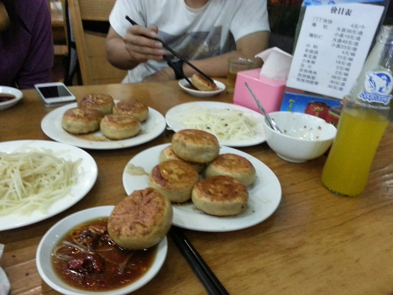 우리는 버스를 타고 시내로 돌아와서 로컬 만두 맛집에 들렸다. 먼딩러우빙门钉肉饼이라고 월병처럼 생겼는데 , 전병에 고기가 들어간 월병모양 튀긴 만두라고 해야 할까? 한 입 배어물면 육즙이 흘러나오는데 전혀 느끼하지 않았다. 중국 식초 간장과 베이빙양 (미린다 같은 중국 탄산음료)과 곁들여 먹는 걸 추천한다.