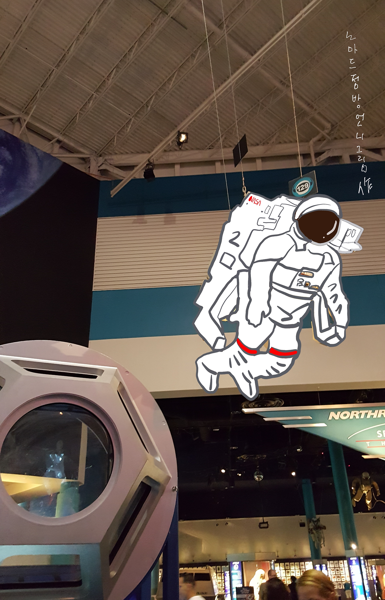 나는 로켓이 등에 프린트된 반팔 티셔츠와 우주인 간식을 샀다. 쿠키 앤 크림 아이스크림이었는데, 동결 건조된 상태라 아이스크림이 주는 시원한 맛은 없고 그냥 쿠키 앤 크림 맛이었다. 그래도 우주에 납품한다 하니 신기했다.