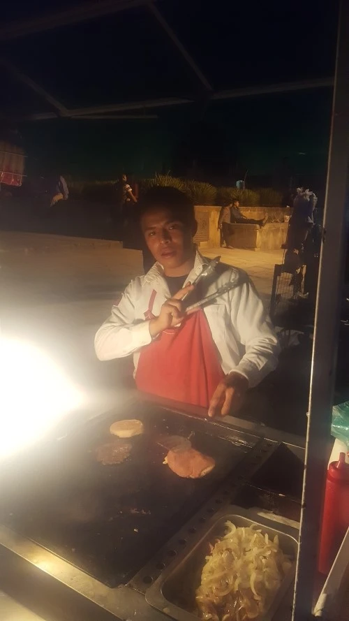 밤이 오고 산토 도밍고 광장엔 음식 냄새가 가득하다. 맛있게 먹은 길거리 햄버거, 젊은 사장님(?)은