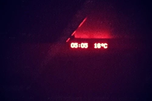 칠흙같은 어둠, 유일하게 빛나는 버스 앞 전광판 시계를 본다.
