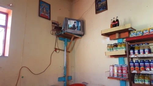오래된 작은 티브이에 역시 오래된 티브이 쇼가 나온다. 꼭 시간 여행을 간 것만 같다.
