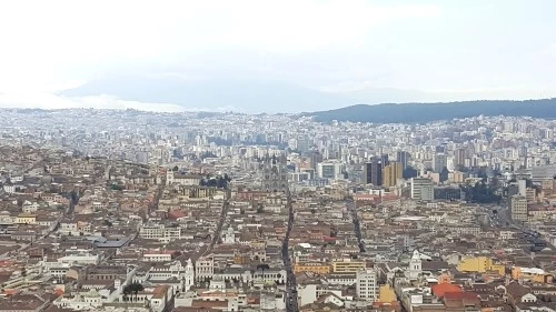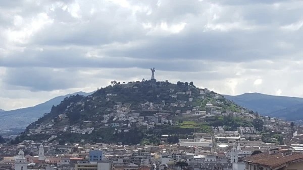 Panecillo에서 내려다보이는 키토 구시가지. 가운데에 Basilica 대성당이 보인다.