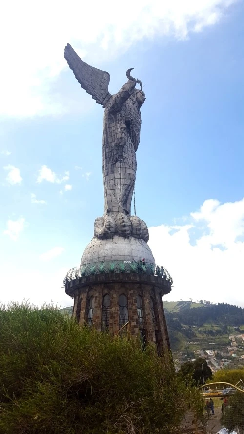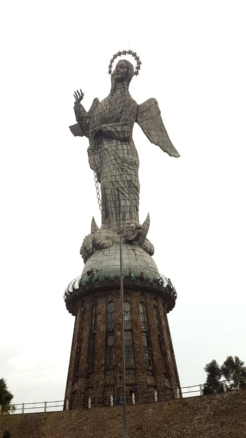 대성당에는 두 개의 전망대가 있다. 가슴 졸이며 올라간 성당 북쪽의 뾰족탑이 있고 반대쪽의 쌍둥이 탑 전망대가 있다. 두 곳 모두 아름답지만 난 뾰족탑에서 바라보는 쌍둥이 탑과 그 너머의 키토 올드시티 풍경이 더 좋았다. 특히 쌍둥이 탑 사이로 절묘하게 보이는 Pacedillo 언덕의 마리아 상이 인상적이었다. 나는 그곳에서 거의 한 시간 동안 키토 올드시티를 바라보았다. 철제계단을 다시 내려가는게 싫어서만은 아니었다.