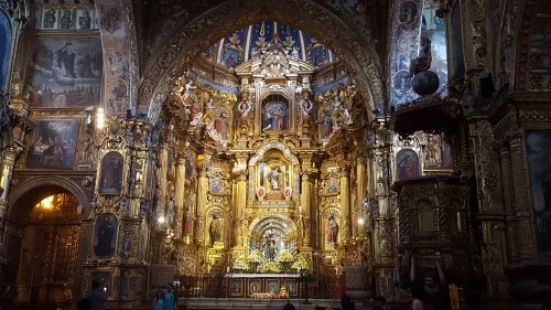Iglesia de San Francisco. 금을 구리 등과 섞어서 치장했다는 내부가 번쩍번쩍거린다.