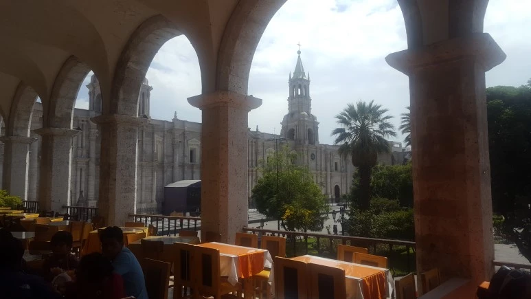 뿌노로 (Puno) 갈 밤 버스를 예약하고 짐을 맡긴 후에 아르마스 광장으로 갔다. 이른 아침이라 아직 한산한 광장은 기대한 대로 하얀 빛을 띠고 있었다. 성당에 들어가서 잠시 기도를 하고 나와 광장을 거닐었다. 배가 고프다. 마침 호객꾼 아저씨가 광장 2층 테라스에 위치한 식당을 소개하길래 조금 가격을 깍고 들어갔다.
