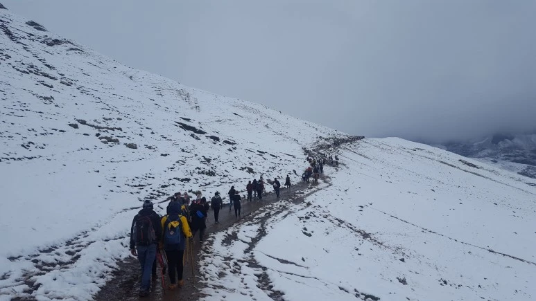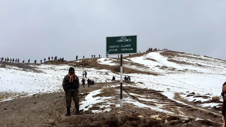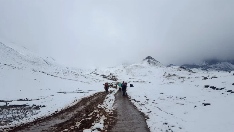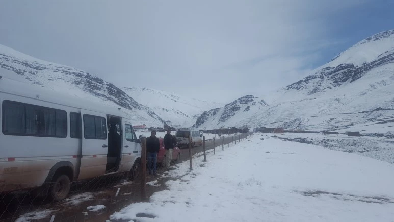 3시간쯤 달렸을까, 비니쿤카 근처의 작은 마을에서 아침식사를 위해 잠시 멈췄다. 예상과 다르게 사방의 들판과 산이 모두 눈으로 덮여 있었다. ‘와!’ 이 때까지만 해도 설경이 아름답다고 생각했는데 덕분에 비니쿤카에 오르는 길은 매우 험난했다. 식사를 마치면 곧 트래킹 출발지로 가서 등산이 시작된다. 해발 약 5,000미터의 정상에 오르기 위해 해발 4,500미터 정도의 위치에서 출발하는 것이다.