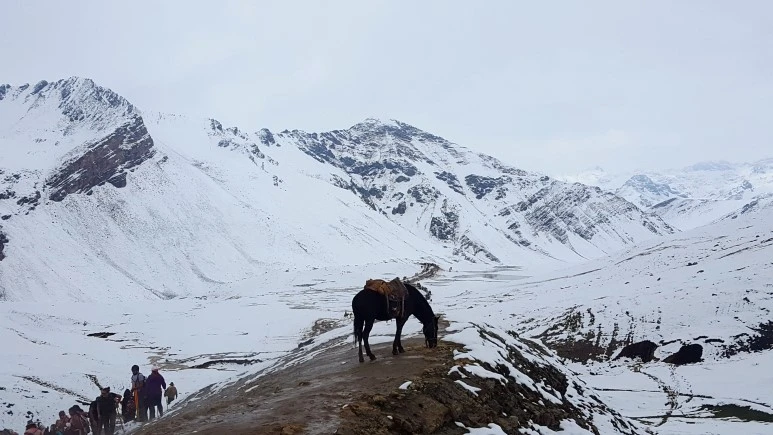 눈에 보이는 모든 산과 들판이 눈에 쌓였으니 하이킹 트랙은 시작부터 질척했다. 눈이 쌓여 미끄러운 것도 문제였지만 질척한 진흙길은 금세 신발을 흠뻑 적셨고 군데군데 미끄러운 곳이 많았다. 그래서 그런지 말을 타고 올라가는 사람들도 많았는데 잉카 문명의 중심지답게 현지 인디오들이 말을 데리고 오르락내리락하며 호객을 한다. 타지 않으면 내 몸이 힘들어지니 부르는 게 값일 정도라 (그리고 이제 고산병에는 익숙해졌으니) 나는 애초에 탈 생각은 하지 않고 한 발자국 한 발자국 걸음을 옮겼다. 한 가지 아이러니한 사실, 사실 말은 약 500년 전 잉카제국이 스페인에게 함락당하면서 전해졌다고 하는데 이 때 말을 통해서 옮겨온 전염병으로 수많은 인디오들이 죽었다고 한다. 그런데 지금 그 후손들이 여행자들에게 말을 태워주고 돈을 버는 모습이 안타깝게 느껴졌다. 중남미를 여행하며 이런 기분이 든 것이 처음은 아니었지만.