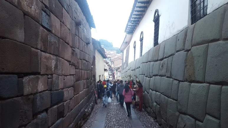 잉카 시대의 건물은 모두 1층이었다고 한다. 100km도 넘게 떨어진 산에서 가져온 거대한 돌로 만든 건물들이었다. 그런데 지금 쿠스코에 있는 건물들은 대부분 2~3층이 넘는다. 식민 시대에 스페인 사람들은 1층으로 된 잉카 건물 위에 유럽풍의 건물을 올렸고 그래서 지금 쿠스코의 오래된 건물들은 1층은 잉카, 그 위로는 유럽풍의 모습을 가지고 있다.