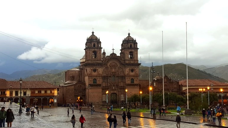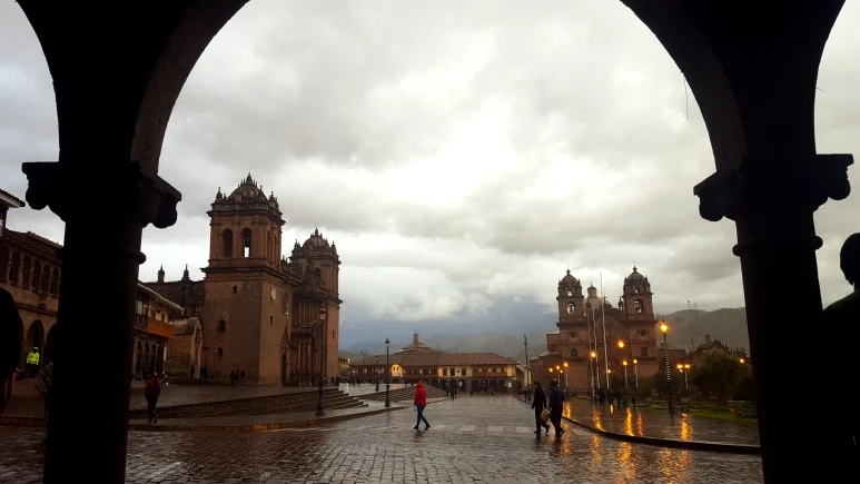 쿠스코 아르마스 광장은 다른 중남미 도시의 중심 광장과 비교해서도 특출나게 아름답다. 웅장한 교회와 성당이 두 면을 장식하고 나머지 두 면 역시 고풍스런 아치로 이루어져 낮이나 밤이나 운치가 있다. 사실 아르마스 광장은 (당시 이름은 잉카 언어인 케추아어로 된 다른 이름이었지만) 잉카시대에 더 규모가 컸다고 한다. 그랬던 것을 마치 일본이 경복궁 한 귀퉁이를 헐어 길을 냈 듯 중간 중간에 건물을 지어서 지금의 구조가 되었다. 이런 식민 시대의 아픔은 도시 곳곳에 남아 있다.