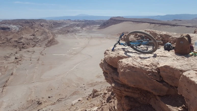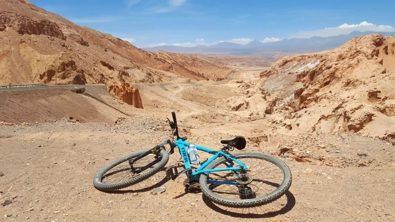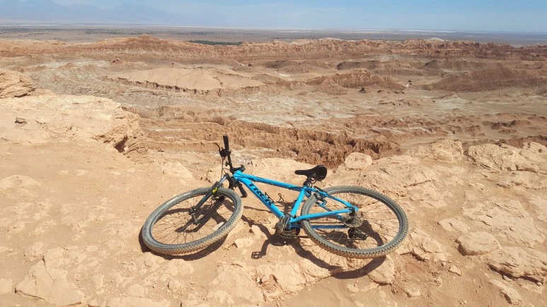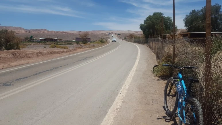 아타카마에서의 셋 째날, 전날 투어로 다녀온 달의 계곡에 자전거를 타고 다시 가기로 했다. 소금 호수나 온천도 갈 수 있었지만 제일 거리가 짧은 달의 계곡이 내가 가기에 적당하다고 생각했다. 3,000페소를 주고 6시간 동안 자전거를 빌렸다. 뜨거운 사막이기에 1.6L 짜리 물 한 병과 빵 2개, 팩 주스 2개를 챙겨서 페달을 밟았다. 건조하고 뜨거운 공기 때문에 금세 입이 마르고 숨이 차올랐다.