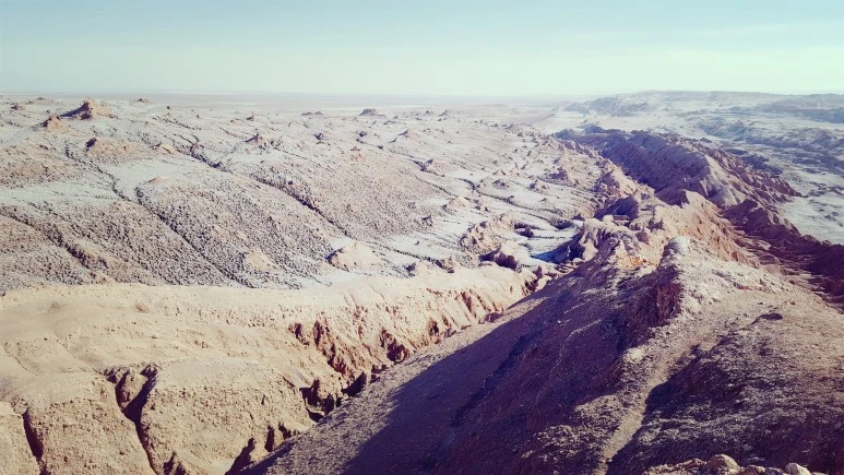 오르막 고비를 넘기면 곧 코요테 전망대가 나온다. 이 곳은 전 날 달의 계곡 투어의 맨 마지막 장소로 해넘이를 봤던 곳이다. 나는 해넘이가 아직 2~3시간 정도 남은 5시경에 갔는데 거짓말처럼 사람이 한 명도 없었다. 대부분 투어사를 통해 찾는 덕분에 해가 지는 시간에 몰리는 모양이었다. 나는 뜨거운 햇빛을 가리기 위해 손수건을 둘러 메고 가져간 빵과 주스를 꺼내 먹었다. 온 몸이 먼지 투성이였지만 과일 주스와 초콜렛 크로와상이 그렇게 맛있을 수 없었다.